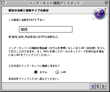 5.任意の接続名を入力し(ここでは、「接続」と入力します)、[モデム]にチェックを入れて、