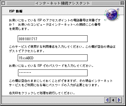 ・ [アクセスポイントの電話番号]:アクセスポイントの電話番号 0091801717