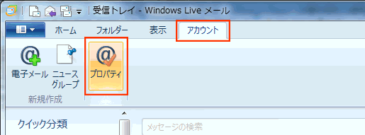 タブをクリックし「プロパティ」ボタンをクリックします。