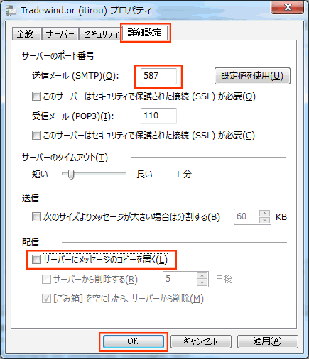 配信の「サーバーにメッセージのコピーを置く」のチェックを外します。