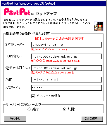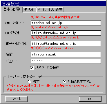 ・【POPアカウント】は itirou@tradewind.or.jp と入力します。itirou の所は