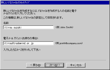 4.[送信メール(SMTP)サーバー]には、「tradewind.or.jp」のように入力して下さい。