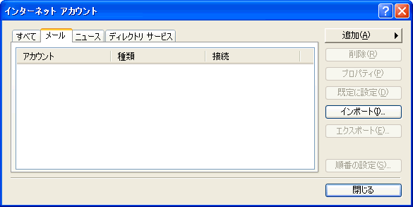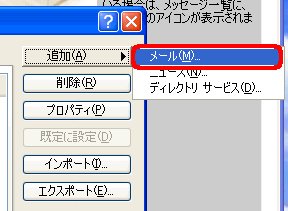 1. Outlook Expressを起動し、[ツール]メニューから[アカウント]を選択し、[メール]