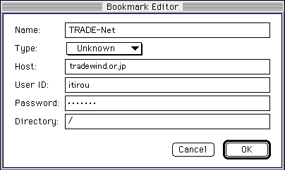 Fetchはホームページのアップロードもできますがインターネット上に接続してあります