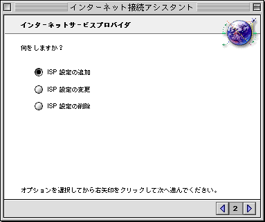 4.[ISP設定の追加]にチェックを入れ、右矢印ボタンをクリックします。
