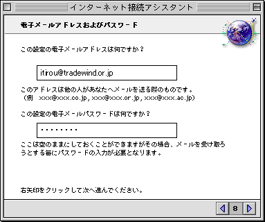 ここでは itirou@tradewind.or.jp と入力していますがご自分のメールアカウント名と
