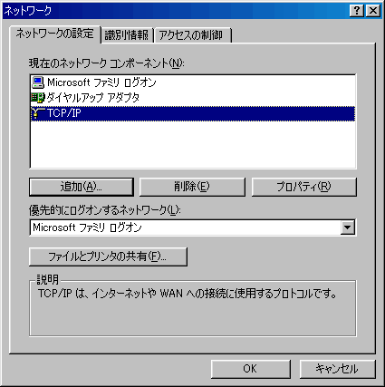 「追加設定」欄に上記の1〜3をそれぞれ入力しダイヤルアップ接続を試してください。