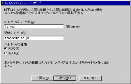 [受信メールサーバ] :tradewind.or.jpのように入力します。
