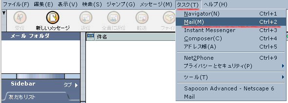 1.メニューバーの[タスク]から[Mail]を選びます。